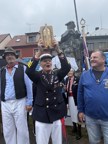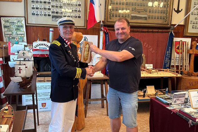 Ten ji uložil v klubovně Vltavanu Davle, kde ji předseda Josef Bílek předal do rukou vrátného Jana Pöschla z Vltavanu Purkarec, který ji s kolegy Josefem Nachlingerem a Jaroslavem Andrlem dovezou až do Prahy, na přístaviště TJ Bohemians, kde vor přečká do čtvrtka, kdy Vltavská štafeta vyvrcholí slavnostním zahájením výstavy VLTAVA slavná & splavná.