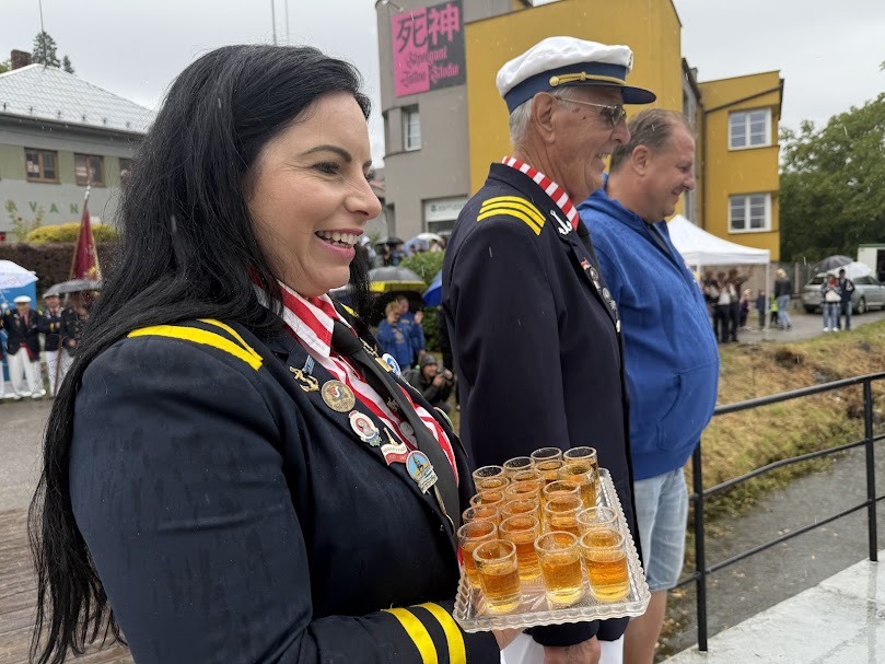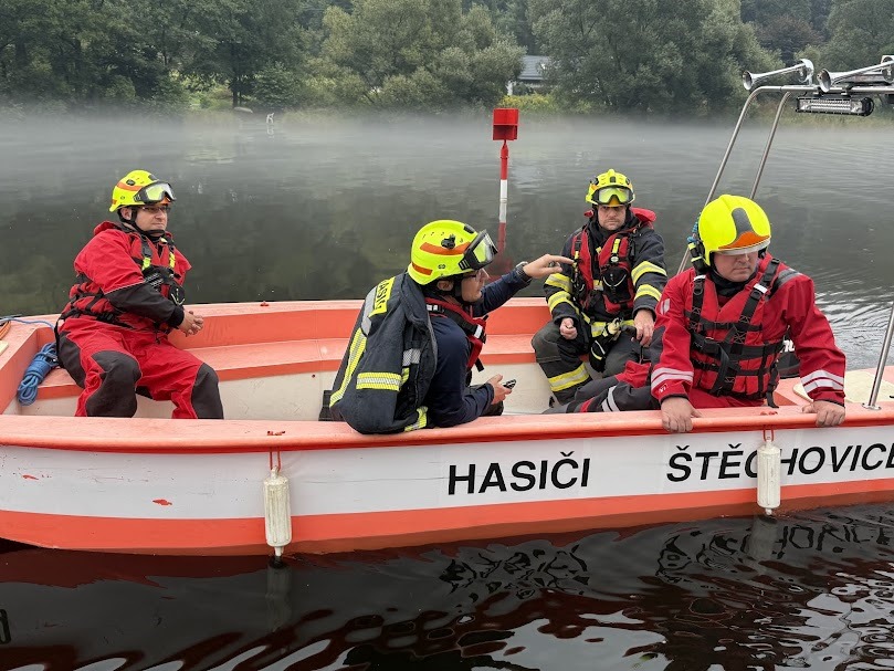 Dovezli tam, společně s kapslí s vodou z vltavských pramenů, hejtmanku Petru Peckovou, poslankyni Věru Kovářovou Železnou a starostku městysu Štěchovice Kateřinu Rožníčkovou, která štafetu předala do rukou starosty městysu Davle Jiřího Prokůpka.